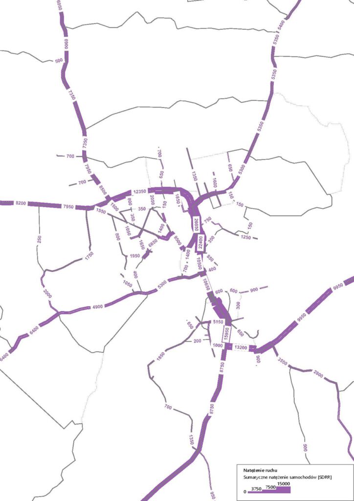 W ramach opracowania wykonaliśmy analizę ruchu z wykorzystaniem Zintegrowanego Modelu Ruchu (ZMR), z dostosowaniem go do specyfiki lokalnej Sandomierza – analiz w skali miejskiej. W ramach prac przygotowania modelu ruchu do analiz i późniejszych analiz zrealizowaliśmy w szczególności: